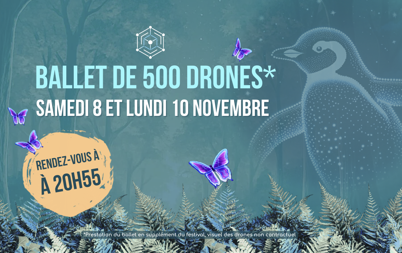 📆 Deux soirées, deux occasions, SAMEDI 8 et LUNDI 10 NOVEMBRE, à 20h55 prolongez votre soirée et assistez à un ballet de drones lumineux !